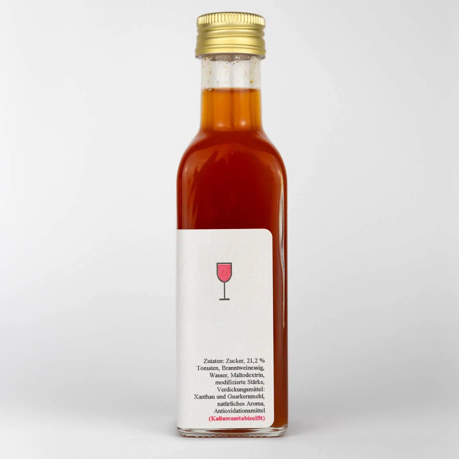 Hergestellt aus: Zucker, 21,2% Tomaten, Branntweinessig, Wasser, Maltodextrin, modifizierte Stärke, Verdickungsmittel: Xanthan und Guarkernmehl, natürliches Aroma, Antioxidationsmittel: KALIUMMETABISULFIT