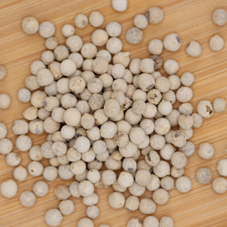 Ganze weiße Pfefferkörner für feine, milde Schärfe